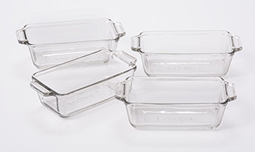 Studio : BigKitchen Publisher : BigKitchen Product Description Make sample size breads and loaves with these mini loaf dishes from Anchor Hocking. Made of quality Anchor Hocking glass, these dishes are great for making personal dinners or snack sized loaves to share. The dishes have helper handles for easy transfer from oven to table and are dishwasher safe. 7" L x 3-1/4" W 0