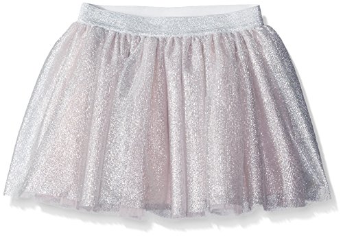 This magical silver skirt will shimmer with her every twirl, revealing a hint of soft pink lining. Silver metallic elastic adds sparkle to the waistline.