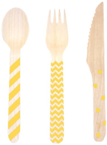 Dress My Cupcake Stamped Wooden Cutlery Set, Chevron/Striped/Polka Dot, Yellow, 18-Pack