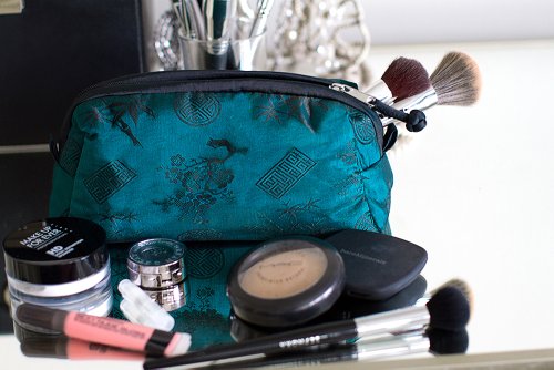 -. Binding : Apparel -. Brand : Red Blossom -. ClothingSize : 9"L x 5"W x 3"H -. Color : Black -. Department : womens -. Feature : Zipper closure / Measures 9"L x 5"W x 3"H / Imported. Dry Clean if needed. / For more selections, click on "Old Shanghai Online" link above first bullet point -. IsAdultProduct : 0 -. ProductGroup : Apparel -. ProductTypeName : ACCESSORY -. Size : 9"L x 5"W x 3"H -. SKU : BACS73SJ -. Title : Cosmetic Bag - Silk Jacquard
