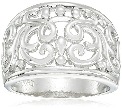 Rhodium Plated Sterling Silver Filigree Ring, Size 7