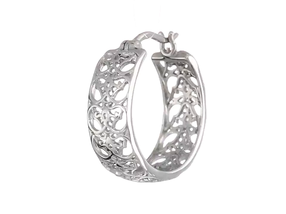 Rhodium-Plated Sterling Silver Filigree Hoop Earrings