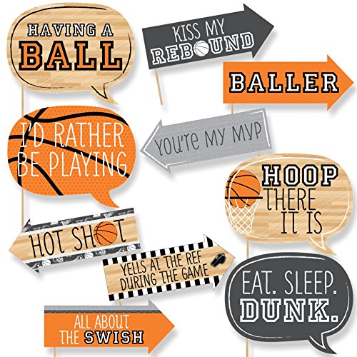 10-Piece Funny Nothin' But Net Photo Booth Props Kit INCLUDES 10 Basketball arrow and speech bubble photo booth props, 10 wooden dowel sticks and adhesives for assembly. EASY ASSEMBLY: Simply attach the printed DIY photo booth props to the wooden dowels with included adhesive and reinforcing stickers.