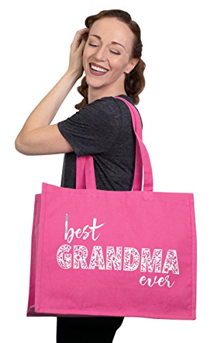 Product Description THE PERFECT GIFT FOR GRANDMA A RhinestoneSash exclusive - This adorable tote says "Best Grandma Ever" in metallic silver. Our canvas tote bags make a fun Birthday, Valentines Day, Mother's Day , Grandparent's Day or Holiday gift for Grandma! This re-usable tote is perfect for everyday shopping! Tote Features: - Color: Your choice of Black, White or Hot Pink
