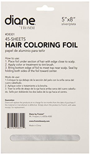 Diane hair coloring foil 5 inch x 8 inch D8301. 45 sheets. 5 inch x 8 inch. No slip texture holds hair and color together.