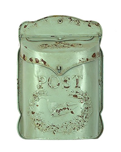 -. Title : Creative Aqua Embossed Tin Letter Box