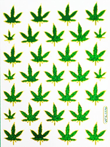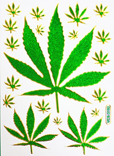 Fancy! Mix Marijuana Pot Weed Bud Ganja Green Mary Jane Leaf Sparkle Sticker-5 Sheet