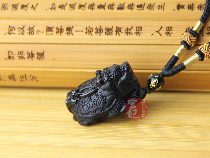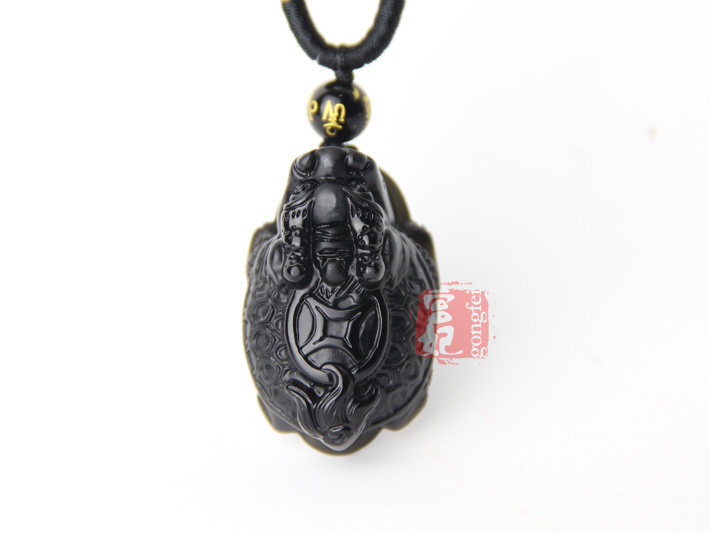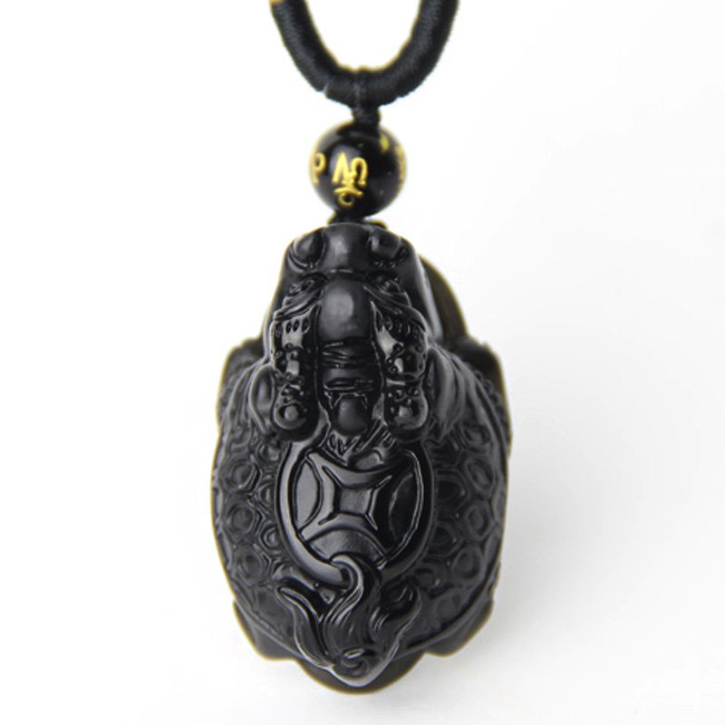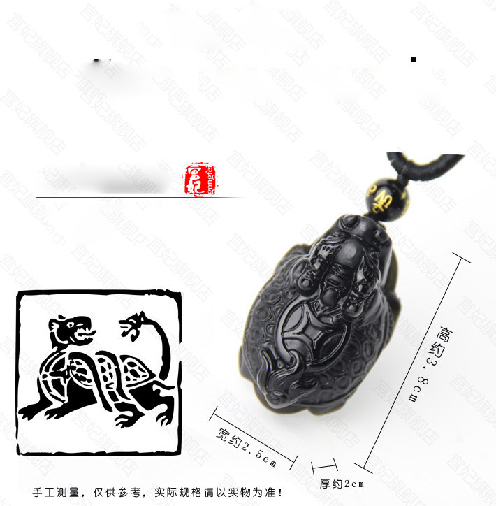 开光神龟护塔天然黑曜石吊坠 属蛇吉祥物项坠