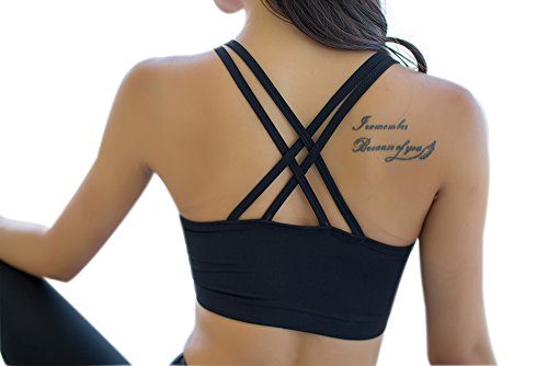 Title : Women's Strappy Crisscross Back Comfort Active Support Yoga Gym Sports Bra Tops (S, Black)