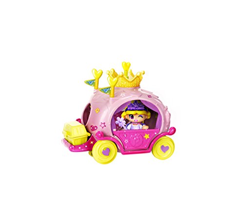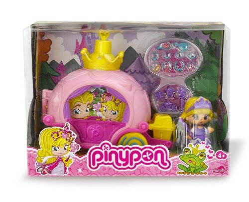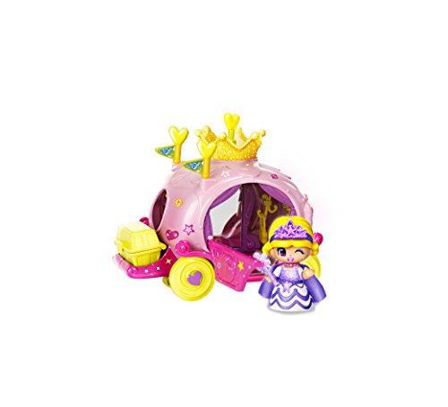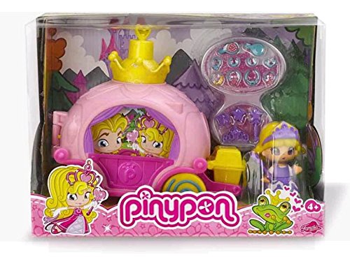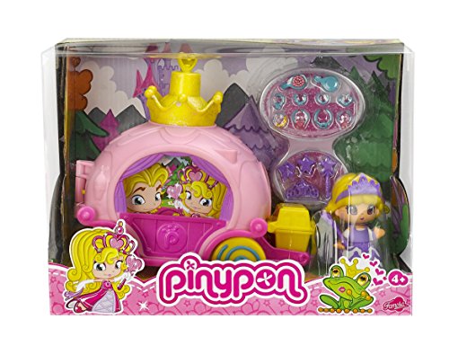 Diese Pinypon Kutsche ist das richtige für echte Pinypon Prinzessinen. Drehe die Krone auf dem Dach, um es zu öffnen und werfe einen Blick hinein. Es gibt viele Überraschungen und Zubehör die dort verstaut sind. Für Fans ab 4 Jahre. Größe ca. 12cm x 20cm x 20cm.Feature