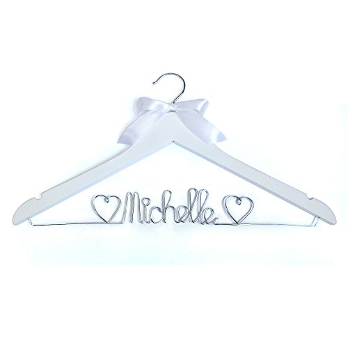 -. Feature : This hanger included 2 hearts symbol, We can do any names, max 12 characters / Width 42-44cm, Material:Wood and Alloy wire / There is a notch on each side of the hanger to accommodate any size dress strap. / wedding personality hangers is one of the most personalized gift , you can provide it to you and your lover, bridesmaid & groomsmen as a unique memorable gift. / After paid, production time 2-3 business days, shipping time 12-18days.