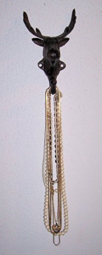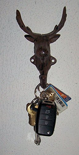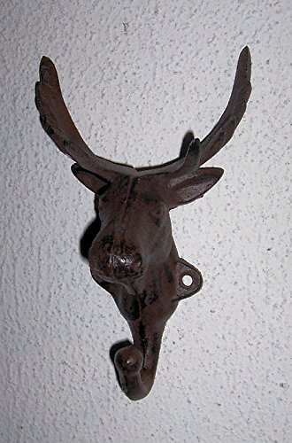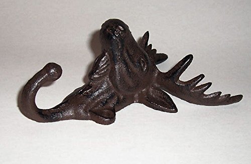-. Feature : Wall hung hanger hook - Moose head antique style - Indoor or outdoor use - Good for farm house ,cottage, lake house, bunglow, home ,and office / Made of heavy cast iron - Rustic dark bronze finish - Hange hook on the bottom of the neck hanger hook / Hanger measures approximately: 4-7/8 in wide x 2 3/4 in deep x 6-1/2 in tall - Hangs by two screws - Not included / Use for hanging coat and hat, keys, jewelry, candles, robe, towel, wall decoration and more - New, ever been used / Note: To see cast iron low P.R.Ice products +++ Search on Amazon: ABC Products Cast Iron