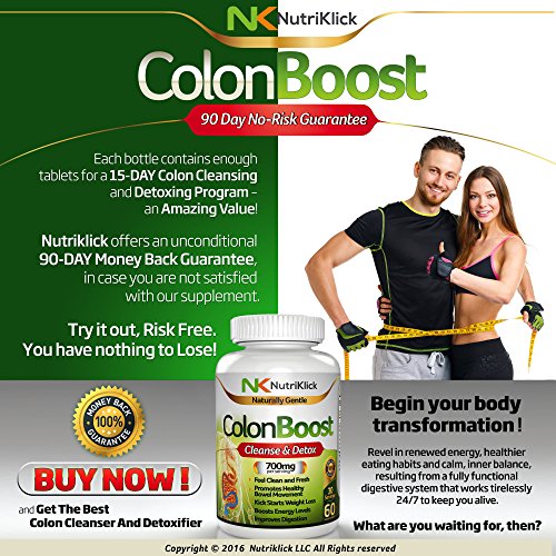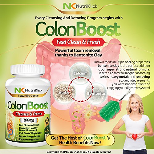 -. Binding : Health and Beauty -. Brand : Nutriklick -. Department : Health & Personal Care Fat Burner Supplements -. EAN : 0641938679595 -. Feature : EFFICIENT COLON CLEANSING: We offer you one of the most effective colon cleansing and detoxing, yet safest and gentle formulation on the market. Formulated to have no stomach cramps for most people. These 700 mg servings are twice as potent as the other doses our competitors sell, helping you achieve full cleansing and detoxification in less time. With ColonBoost, you will get great results in DAYS! / ENJOY MAXIMUM WEIGHT LOSS & MOOD BENEFITS: A healthy digestive system and a cleansed, detoxified colon help you achieve your weight loss goals, as they efficiently absorb food nutrients while eliminating waste. You will become fresh and energized, feeling the rush of restoring your body through perfect nourishment and hydration! You will burn up calories a lot more efficiently and see the amazing difference in your physique, fast! / STUNNING VALUE & MONEY-BACK GUARANTEE: Each bottle contains enough tablets for 15-DAY colon cleansing and detoxing program - an amazing value! Buy ColonBoost with confidence. We are offer a 90-DAY Unconditional Money Back Guarantee, in case you are not satisfied with our supplement, for any reason. / POWERFUL TOXIN REMOVAL, THANKS TO BENTONITE CLAY: Known for its multiple healing properties, bentonite clay is the perfect addition to our super strong natural formula. It acts as a forceful magnet, absorbing toxins, heavy metals and removing accumulated elements you were not even aware of, clogging your digestive system! / TOP-RATED NATURAL FORMULA FOR FULL DIGESTIVE HEALTH: ColonBoost helps you achieve full digestive balance. It improves digestion and helps ease disturbances related to improper body waste drainage, resulting from underperforming colon movements. It provides relief from constipation and promotes healthy bowel movements, too. Click Buy Now And Get The Best Colon Cleanser And Detoxifier On Amazon! -. IsAdultProduct : 0 -. Label : Nutriklick LLC -. LegalDisclaimer : These statements have not been evaluated by the FDA. This product is not intended to diagnose, treat, or cure any disease. Please read disclaimers and warnings on the label before use. Product might differ slightly from images on Amazon. Actual product packaging and materials may contain more and different information than what is shown on our website. We recommend that you do not rely solely on the information presented and that you always read labels, warnings, and directions before using or consuming a product. -. Manufacturer : Nutriklick LLC -. MPN : 60 capsules -. PackageQuantity : 1 -. PartNumber : 60 capsules -. ProductGroup : Health and Beauty -. ProductTypeName : HEALTH_PERSONAL_CARE -. Publisher : Nutriklick LLC -. Studio : Nutriklick LLC -. Title : Gentle & Safe 15 Day Cleanse & Detox |Weight Loss & Energy Boost| Optimum Strength 700 mg serving |All Natural Toxin Removal | Helps Digestive system |Enriched With Bentonite Clay -. UPC : 641938679595