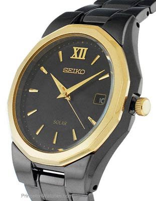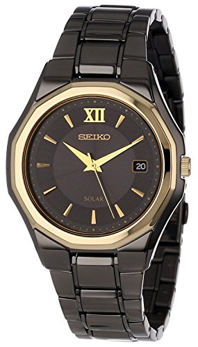 세이코import Mens Watch Seiko 세이코 SNE168 스테인레스 스틸 Solar 쿼츠 Black Dial Gold Bezel 남성용 맨즈 손목시계 (병행수입)