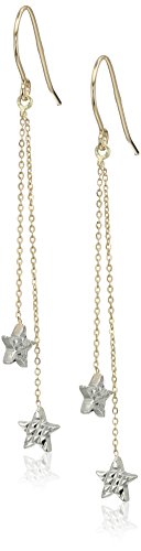 -. Title : 14k Two-Tone Gold Diamond Cut Star Dangle Earrings