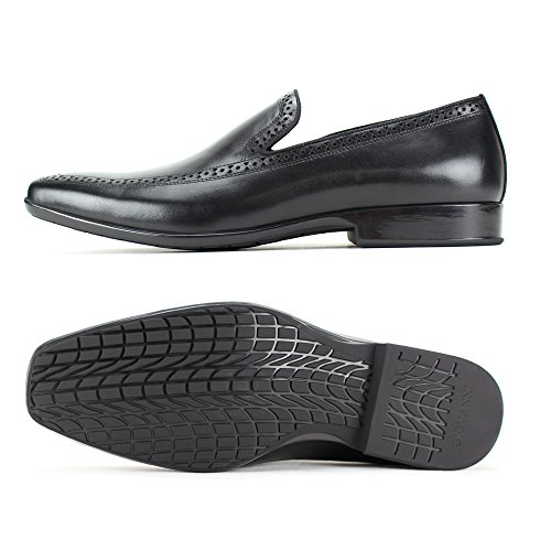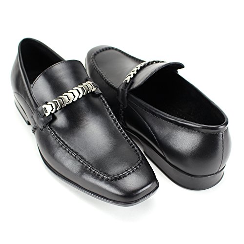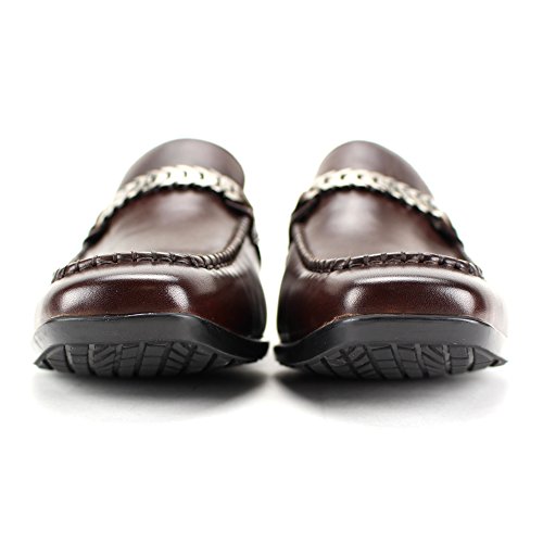 Binding : Shoes Product Description Slick and exquisitely balanced, these loafers have the right amount of flash. The chain ornament and raised seam add extra flair to this slip-on. The squared off moccasin toe goes well with the subtle squared off snub nose. The insole gives just the right amount of padding to the sole. The sole has a ton of grip. Please note that these slip-ons are more of a European fit, a little tight. 0