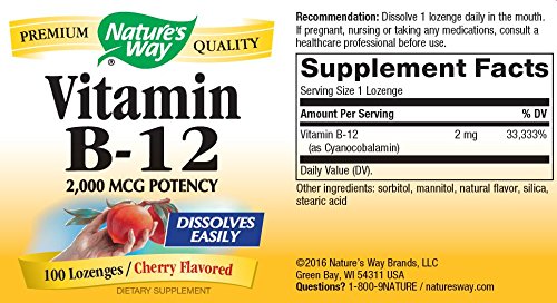 Nature's Way Vitamin B12 are sublingual lozenges that can be taken to promote healthy levels of energy and functioning of the cardiovascular system.