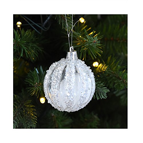 Stock Show 4Pcs Christmas Tree Ball Ornaments BlingBling Hanging Sequin Ball Ornaments Pendants for Christmas Holiday New Years Home Office Shop Windom Decor, White Transparent
