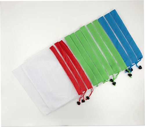 Reusable Mesh Produce Bags Washable Eco Friendly Bags for Grocery Shopping & Storage, Fruit, Vegetable, and Toys Set of 12 - Three Large 12x17in, Six Medium 12x14in, and Three Small 12x8in