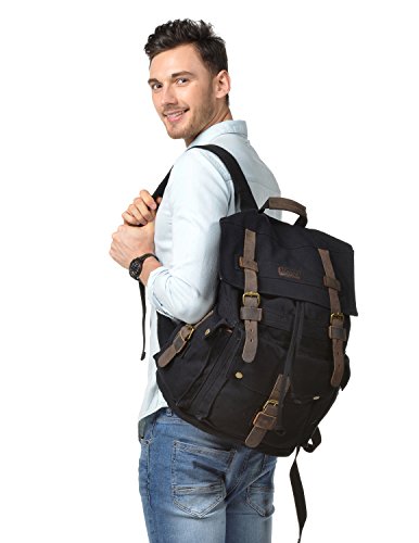Kattee Men’s Leather Canvas Backpack Large School Bag Travel Rucksack