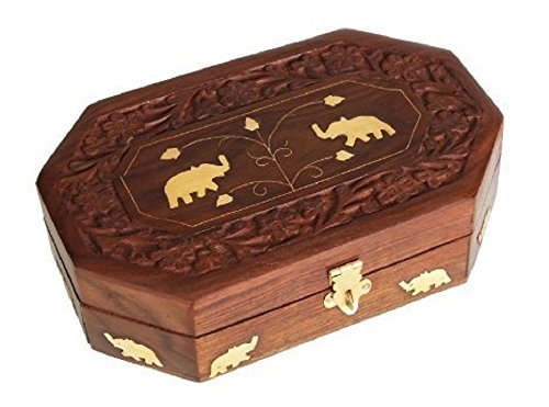 Christmas or Thanks Giving Day Gift, Wooden Jewelry Box Octal Shape, Elephant Inlay Vintage Box, Storage box, Brown Color Jewelry Box, Real Wood Jewelry Box, Jewelry Box Organizer - 8 X 5"