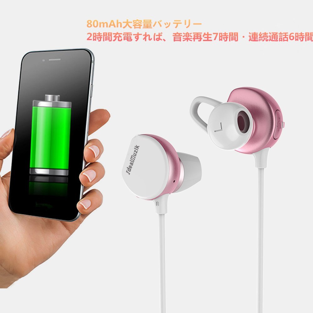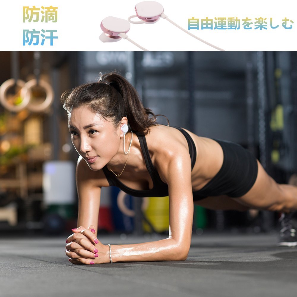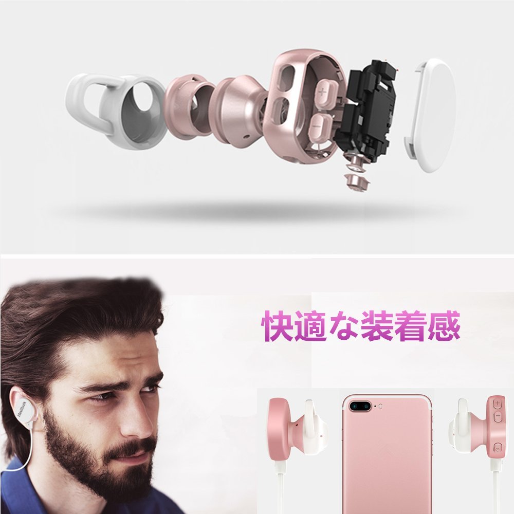 ▲「軽量+IPX防水等級+フィード感良い」●このイヤホンは軽量設計(約15g)、ストレスなく簡単に装着できます。フィード感も最高です。●IPX防水等級でいかなる方向からの水の直接噴流によっても有害な影響を受けないということです。スポーツ際の汗、小雨や水しぶきが全然心配なく、ゆっくりと音楽を楽しめます。※完全防水ではないため、どしゃ降りの雨天での使用や水に浸かることは必ずお避けください。●このブルートゥース イヤホンの上部に柔らかなイヤーフックがあって、耳にちゃんとにフィットするまで調整して、しっかりと固定できますので、ランニングやジョギング、スケートなど運動時、また外での仕事する際も外れにくいです。