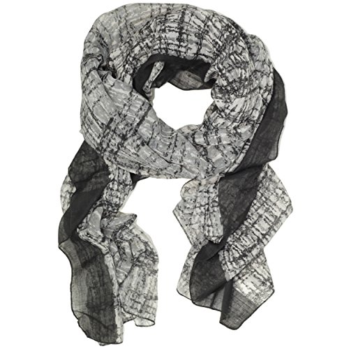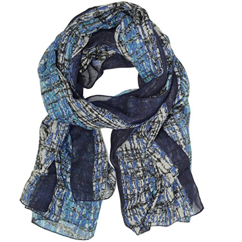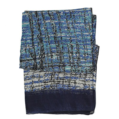 (Bucasi)/Accessories/Cold Weather Accessories/DIRECT FROM USA/Bucasi Modern Print Black and Blue Scarf in Wavy Grid