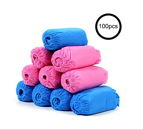 Non-woven disposable shoe cover, non-woven materials, waterproof, Non-slip and Non-skid, anti-static effect (blue and pink)