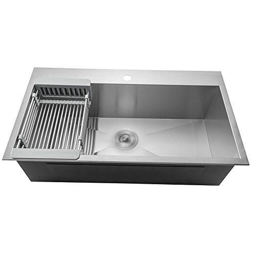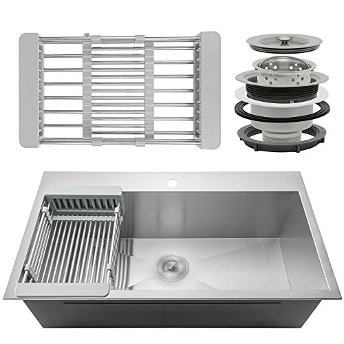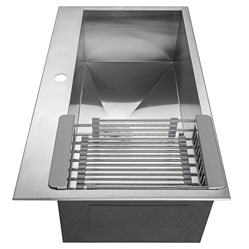 Firebird 32" x 18" x 9" Topmount Drop-In 18 Gauge Handmade Stainless Steel Single Bowl Kitchen Sink w/ Faucet Hole Drain & Adjustable Dish Tray