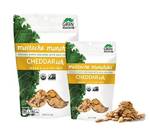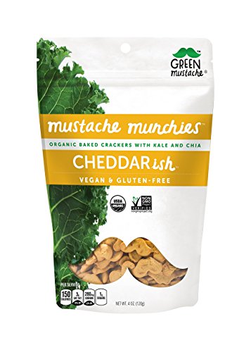 -. Title : Green Mustache - Mustache Munchies "Cheddarish" Crackers, 4 oz., 3 Piece
