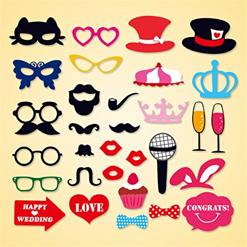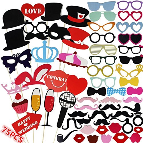 75pcs Christmas Photo Booth Props Birthday Party Wedding Reunions YOKER Colors Of Mustache Glasses Frames Ties Lips Crown Pipe Eyes Hat Mouth Bowties Photobooth Dress-up Accessories Party Favors