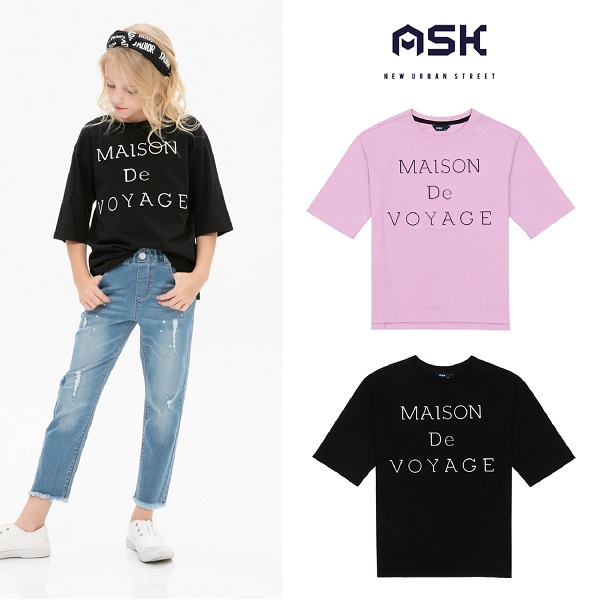 엠보에 나염 아트웍으로 포인트를 준 여아 6부 소매티셔츠입니다.