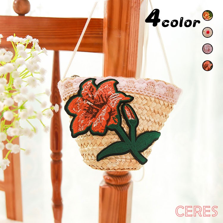 【製品仕様】■商品名かごバッグ キッズ ショルダーバッグ 手提げ 夏 麦わら ■商品説明刺繍入り■サイズ/寸法夏らしいキッズ向けかごバッグ。麦わら帽に合うバッグはいかがですか?■素材/材質草網■色/カラー01花(小) 02花(大) 03水玉 04百合