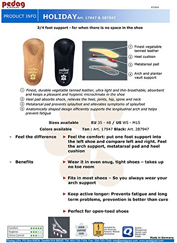 Pedag 2879 Holiday 3/4 Leather Ultra Light, Thin, Semi-Rigid Orthotic with Metatarsal Pad, Arch Support and Padding at the Heel, Black, Women's 8 EU 38