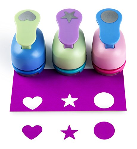 SiCoHome Paper Punches,Pack of 3,Heart,Circle,Star,Easy to Use for SiCoHome Scrapbook,Greeting Crads or Handmake Projects