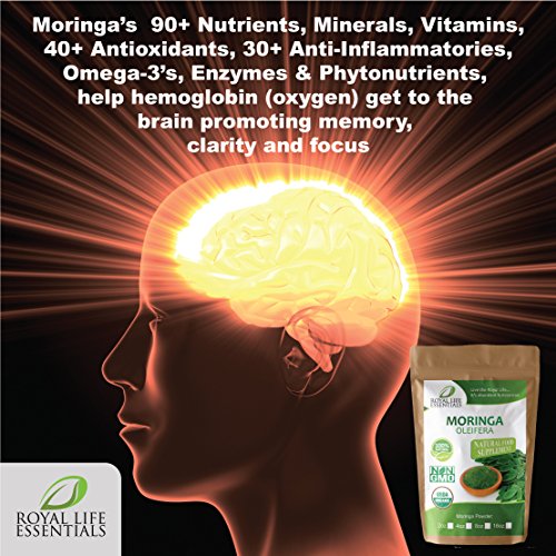 ORGANIC MORINGA OLEIFERA NUTRIENT RICH - In our fast-food culture, nutrients are gone. Soil is depleted. Everyone needs nutritious food. Moms, dads, children, grandparents are taking Royal Life Essentials USDA Green Organic Moringa Powder because it's the "King of Superfoods" contains 3x the iron, 18 amino acids, 90+ nutrients, 40+ antioxidants, 30+ anti-inflammatories & Omega 3's. Dr. Marcu says, it comes very close to being a perfect source of nutrients in terms of variety & concentration.