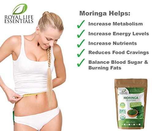 HIGHEST QUALITY MORINGA OLEIFERA LEAF POWDER: While other companies use fillers, are non-organic, brown (use less nutritious parts of the tree); Royal Life Essentials uses 100% USDA Certified Organic Green Moringa Powder: farmed with fresh, clean water, near the Himalayas, where it was 1st discovered. This means you get the highest, freshest, most nutrient rich, Moringa, for your nutritional health herbal supplement needs. Rest easy knowing exactly what's going into your body is certified & safe