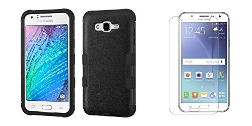 This combo pack includes an impact shock resistant vanguard dual layer hybrid case cover [Color: Black] and screen protector for the Samsung Galaxy J7 2015 (J700, J700T, SM-J700, SM-J700P) on the T-Mobile, Boost Mobile, Virgin Mobile, Metro PCS networks. This shock absorber case is made of soft silicone gel on the inside that wraps around the phone and hard PC material on the outside. TUFF hybrid armor cover case protects phone from high impact falls. Case has a raised rim around screen for a lay on table design. Tempered glass screen protector is 100% transparent clear and comes sealed with cleaning cloth and easy install instructions. Shields your phone's screen against unwanted fingerprints' dirt' dust and scratches. Clear design provides maximum clarity' preserving your screen's original look. Glass is 0.2 to 0.45mm(varies by model) thick and made with high quality chemically treated transparent tempered glass. Offers phone screen break protection and shock resistance. The surface of the tempered glass has a hardness of 8-9H,three times stronger than regular PET film. Oleophobic coating prevents fingerprints and other contaminants and makes the film easy to clean. The tempered glass is coated on the back with a strong silicone adhesive that makes installation easy and attaches the film firmly so as to not affect the touch screen's sensitivity. If broken, the tempered glass breaks into small pieces that are not sharp, making it safer than other glass products. Bemz Depot Atom LED keychain light is included. Dropped your phone in the dark? This LED keychain is perfect for illuminating dark areas. Has an ON/OFF switch and pressure button. Comes with 3v watch battery. Attaches easily to any keychain.Feature