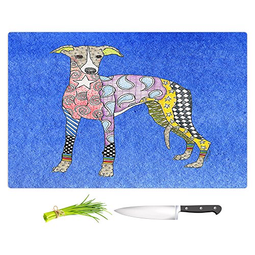 DiaNoche Designs CB-MarleyUngaroGreyhoundBlue2 Artist Marley Ungaro-Greyhound Blue Cutting Boards from, Large 15" x 11"