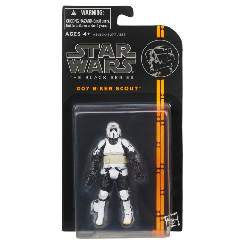 -. Binding : Toy -. Brand : Star Wars -. Color : multi-colored -. EAN : 0653569880394 -. Feature : Detailed figure looks like an imperial Biker Scout / Re-create your favorite Star Wars battles or create brand new ones / Stand him up in your collection. / Includes figure -. IsAdultProduct : 0 -. Label : Hasbro -. LegalDisclaimer : Cantcook4you is not responsible for, and expressly disclaims all liability for damages of any kind arising out of use of any products sold on this site. The product and service information does not constitute an endorsement by cantcook4you, and cantcook4you has not investigated any claims made by any advertiser. Product information is based solely on material received from suppliers. -. Manufacturer : Hasbro -. Model : A5080000 -. MPN : A5077-A5080 -. PackageQuantity : 1 -. PartNumber : A5077-A5080 -. ProductGroup : Toy -. ProductTypeName : TOYS_AND_GAMES -. Publisher : Hasbro -. ReleaseDate : 2013-08-01 -. Size : Standard -. Studio : Hasbro -. Title : Star Wars The Black Series Biker Scout Figure 3.75 Inches -. UPC : 653569880394 -. Warranty : No Warranty