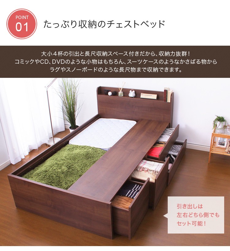 チェストベッド【コンシェラ-CONCIERA-(ダブル)】(ロール梱包のポケットコイルスプリングマットレス付き)