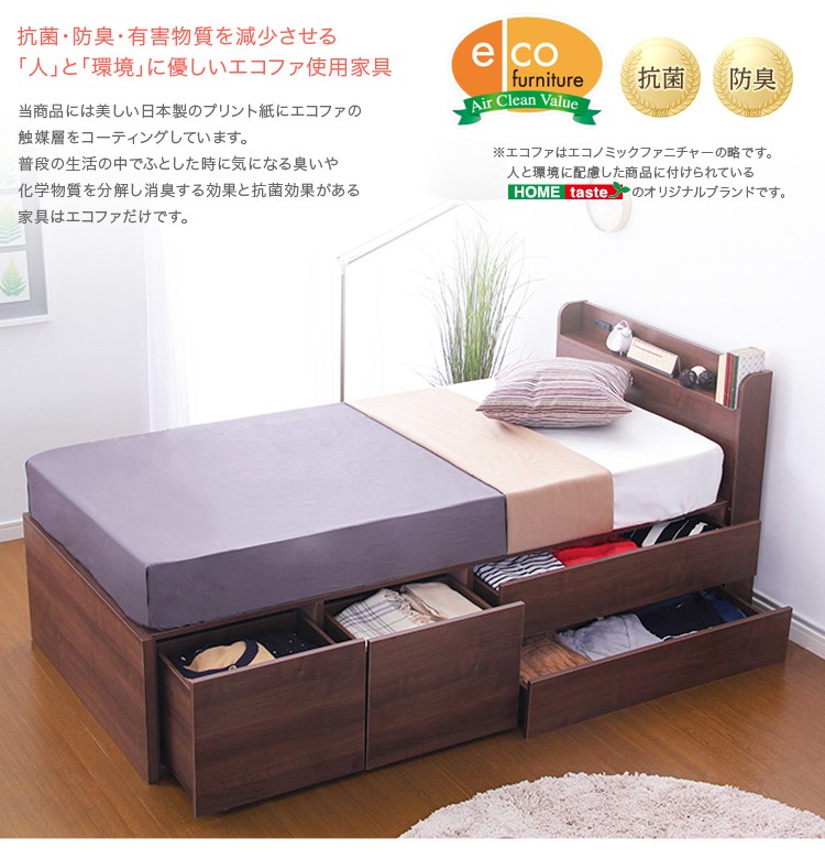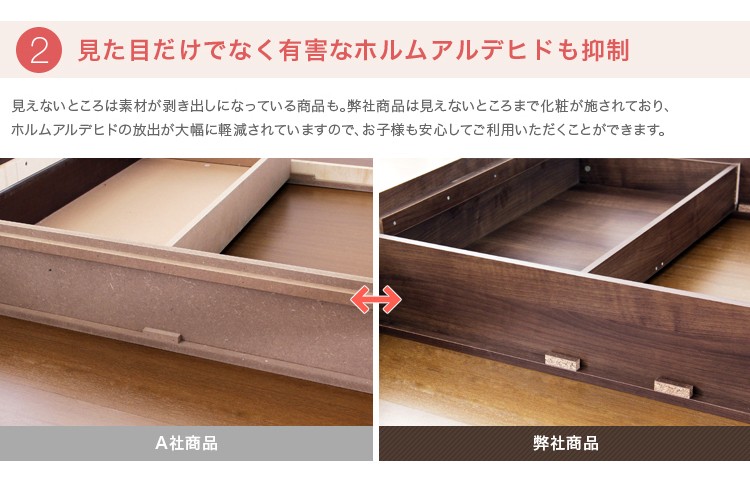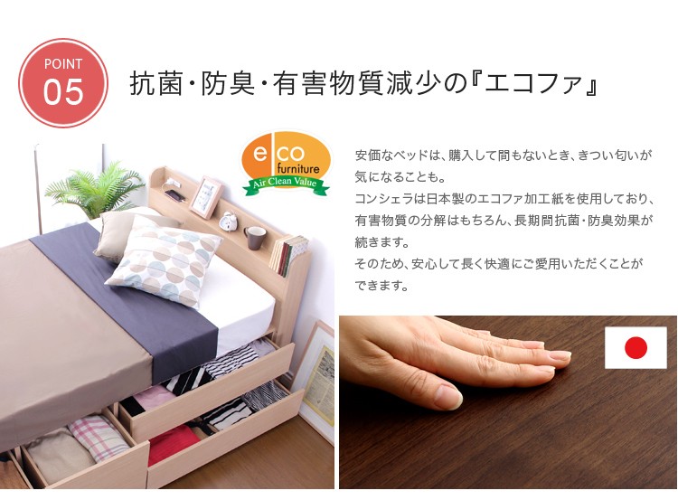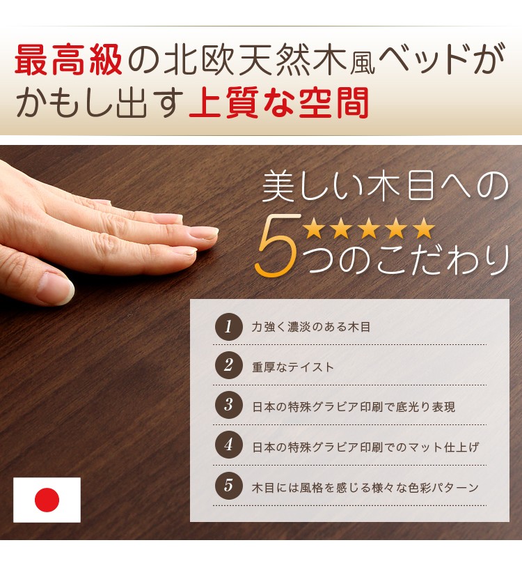 (ベッド)パーチクルボード、MDF、表面材:プリント紙化粧合板