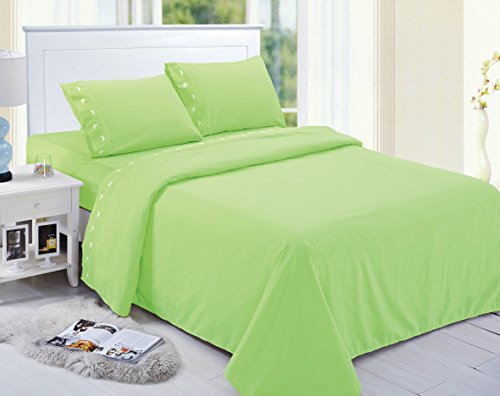 Home Simplicity 90GSM Embroidery Sheet Set, Queen, Light Green