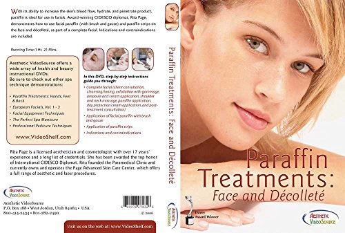 RunningTime : 75 ReleaseDate : 2006-02-20 Studio : Aesthetic VideoSource Publisher : Aesthetic VideoSource Format : Multiple Formats/Color/NTSC Actor : Rita Page/Humberto Estrada Binding : DVD Product Description With its ability to increase the skin's blood flow, hydrate, and penetrate product, paraffin is ideal for use in facials. Rita Page demonstrates how to use facial paraffin wax (with brush and gauze) and paraffin strips on the face and decollete, as part of a complete facial. 0