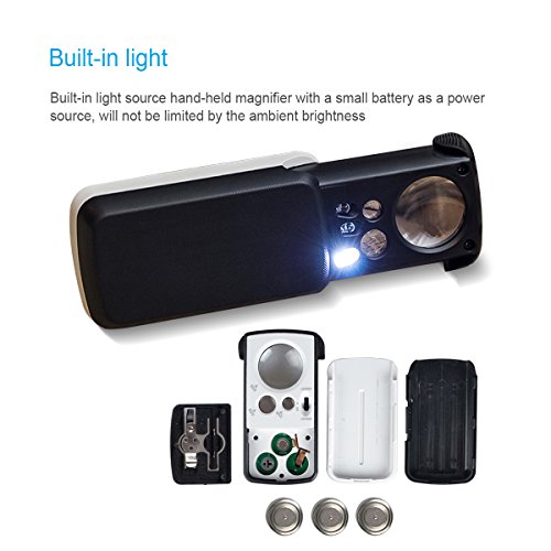 Jewelry Magnifier, Breett 30X,60X,90X LED Illuminated Magnifying glass,for Gems Jewelry Rocks Stamps Coins Watches Hobbies Antiques Models Photos - Black