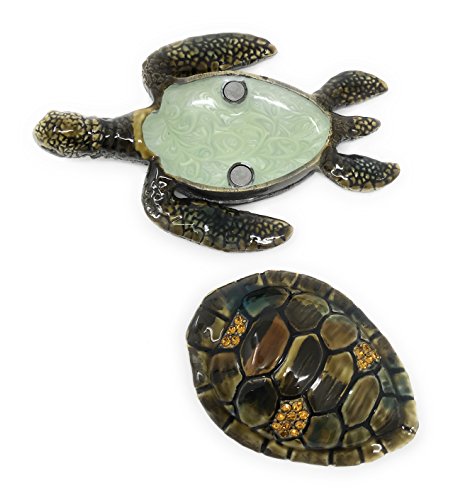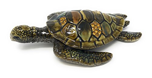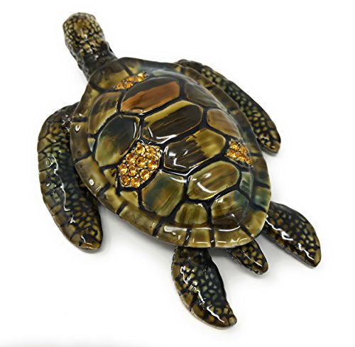 Enameled Sea Turtle Trinket Box by Kubla Craft, Accented with Austrian Crystals, 4.5L