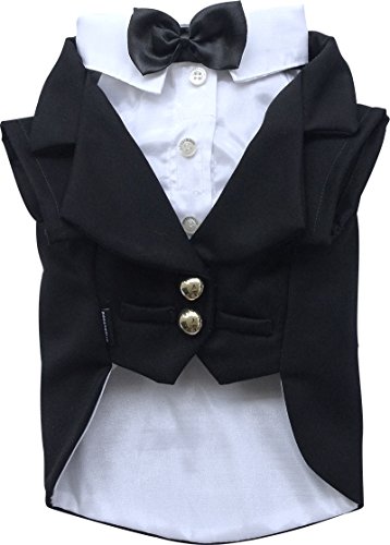 Studio : Dogartis International Corporation Publisher : Dogartis International Corporation Binding : Misc. Product Description Poly-cotton classic black tuxedo with white shirt and bow tie. Very high quality. DoggyDolly is one of Europe's most popular pet brands. The product comes with care label instructions and ships with polybag and hanger. 0