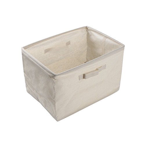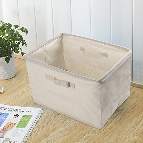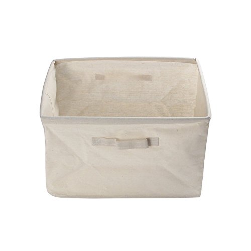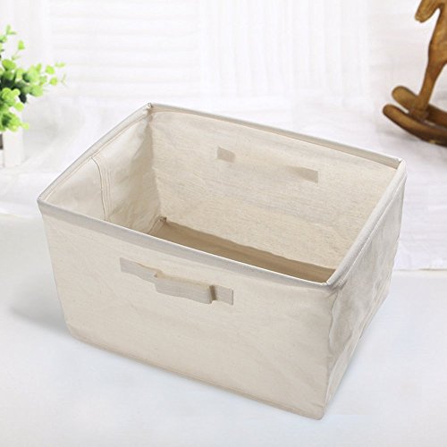 Cotton Linen Foldable Cloth Storage Cuboid Basket Bins Organizer Containers Beige Series Shallow Mouth Handle Ditty (14.57''x10.24''x9.84'')