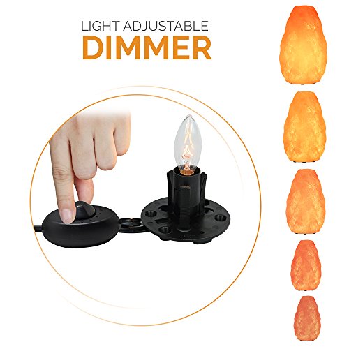 DIMMABLE SALT LIGHTING: Himalayan Glow’s Himalayan Salt Lamp is adjustable with the built-in dimmer to match the ambiance. It comes with a 6ft Power cord, dimmable rotary switch and 15 watts bulbs. Electric salt Lamp and cord assembly are ETL approved