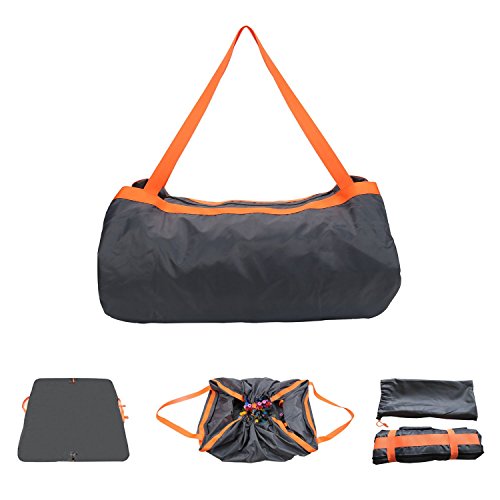CARESUS Waterproof Beach Blanket & Travel Bag in One,Multifunction Picnic Mat for Outdoor Beach Camping Picnic Blanket Storage Bag (Black+Orange)